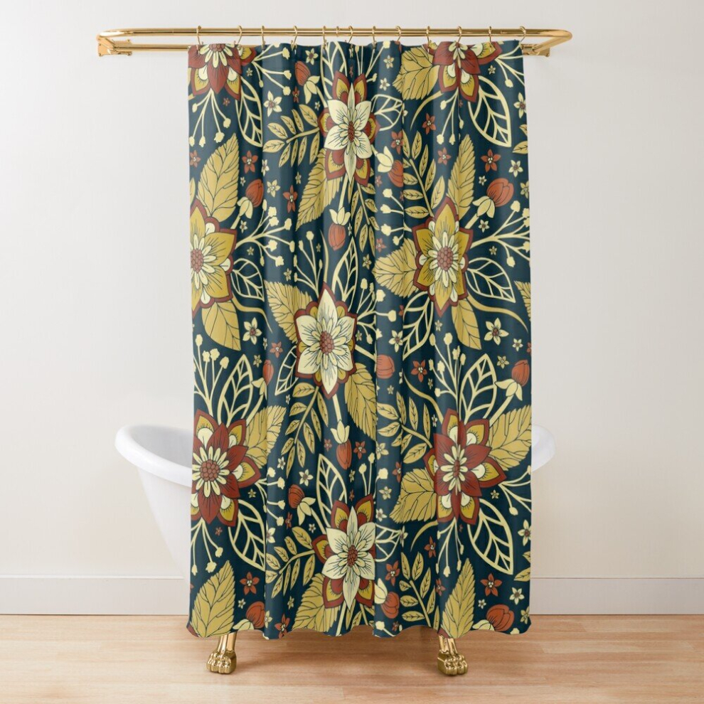 Shower Curtains Gold and Navy Blue Floral for Bathroom Decor 72x72 inches
