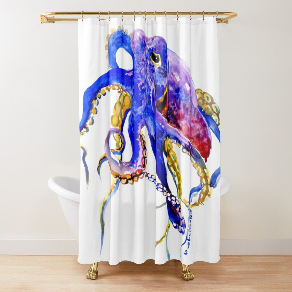 Shower Curtains Ocotpus Blue, Gold aquatic Beach Octopus design for Bathroom Decor 72x72 inches
