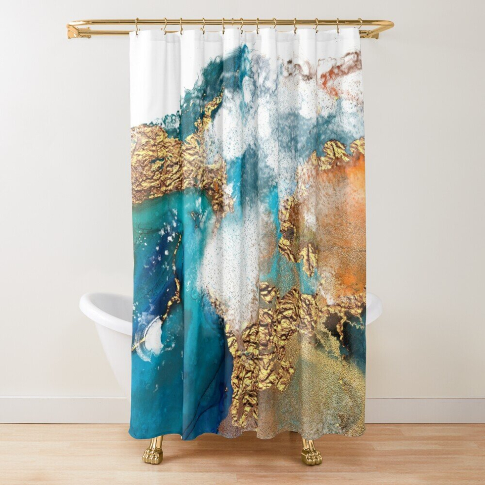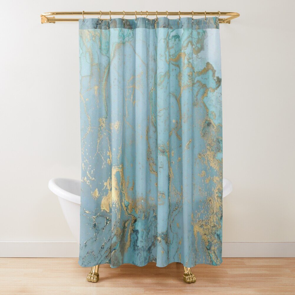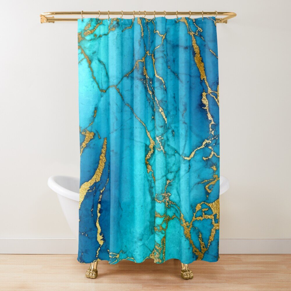 Shower Curtains Marble Design - Gold Effect - Turquoise Blue, Teal Marbling for Bathroom Decor 72x72 inches