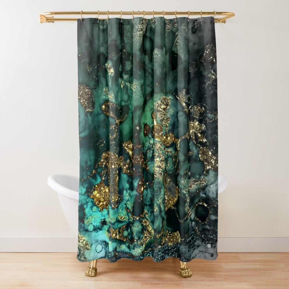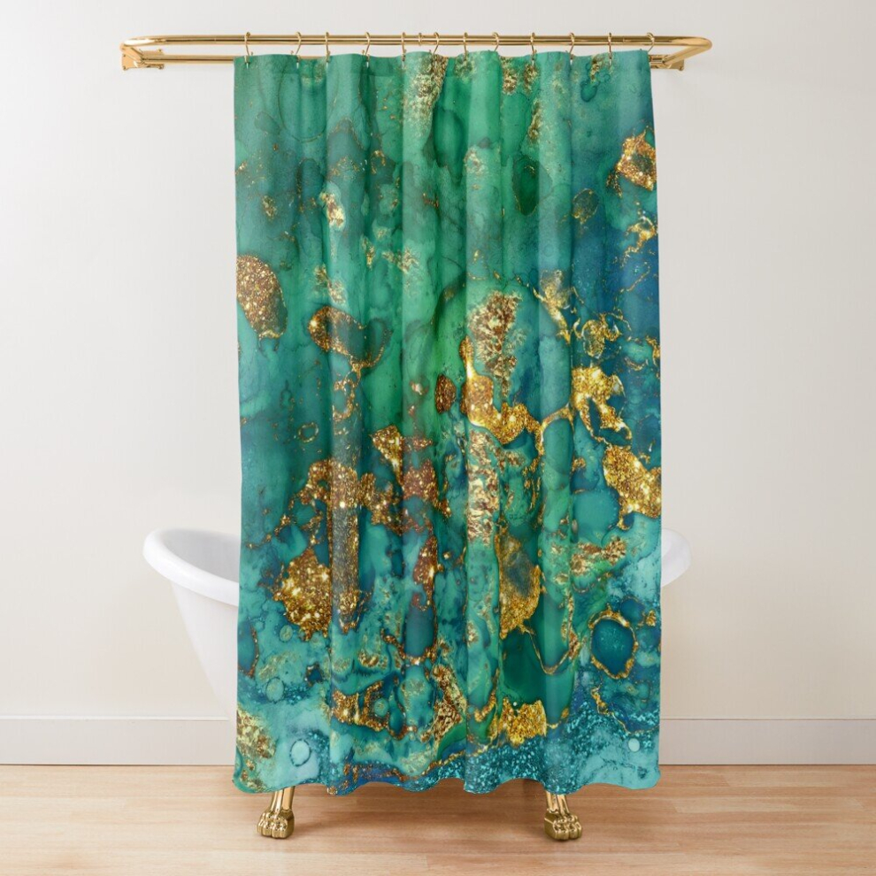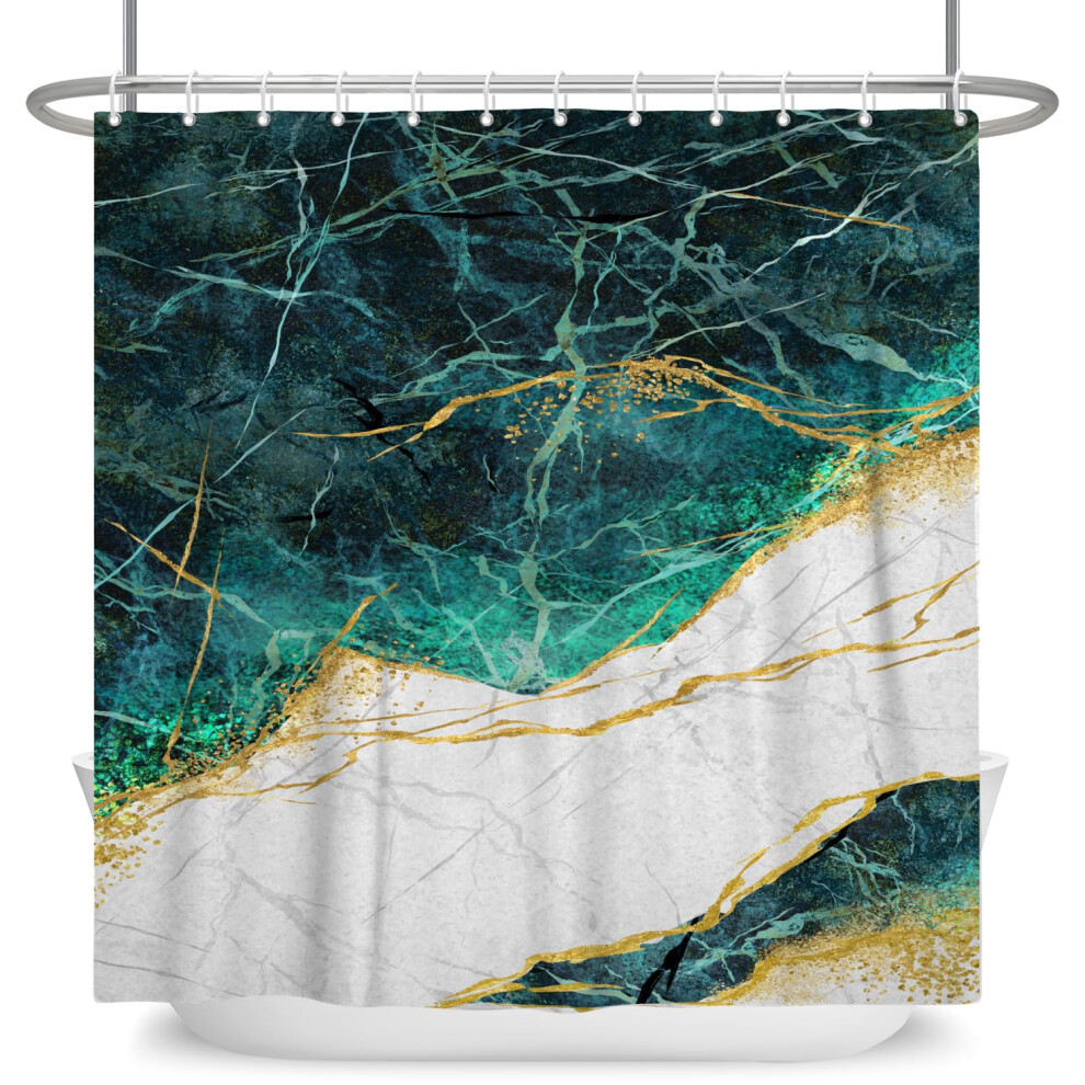 Shower Curtains Sparkling Gold Glitter on Green and Blue Faux marble for Bathroom Decor 72x72 inches