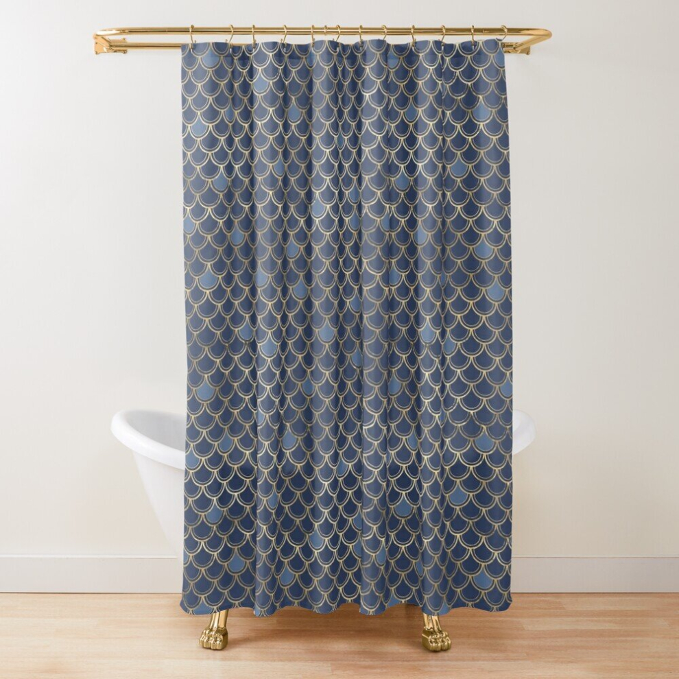 Shower Curtains Mermaid Scales Blue and Gold for Bathroom Decor 72x72 inches