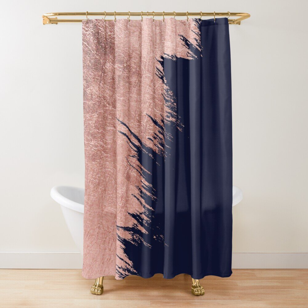 Shower Curtains Navy blue abstract faux rose gold brushstrokes for Bathroom Decor 72x72 inches