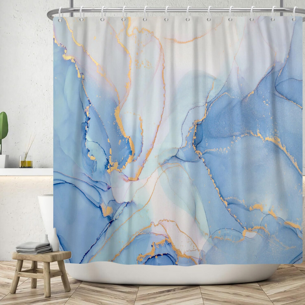 Hnmdmyi Marble Shower Curtain 180x200, Blue Gold Abstract Marble Bathroom Curtains Luxury Modern Aesthetic Art Ink Texture Waterproof Polyester Fabric
