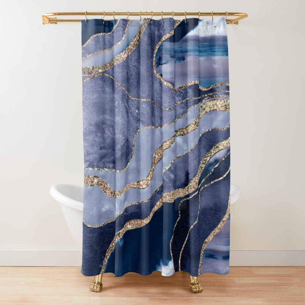 Shower Curtains Blue Marble Agate Gold Glitter Glam #1 (Faux Glitter) #decor #art for Bathroom Decor 72x72 inches