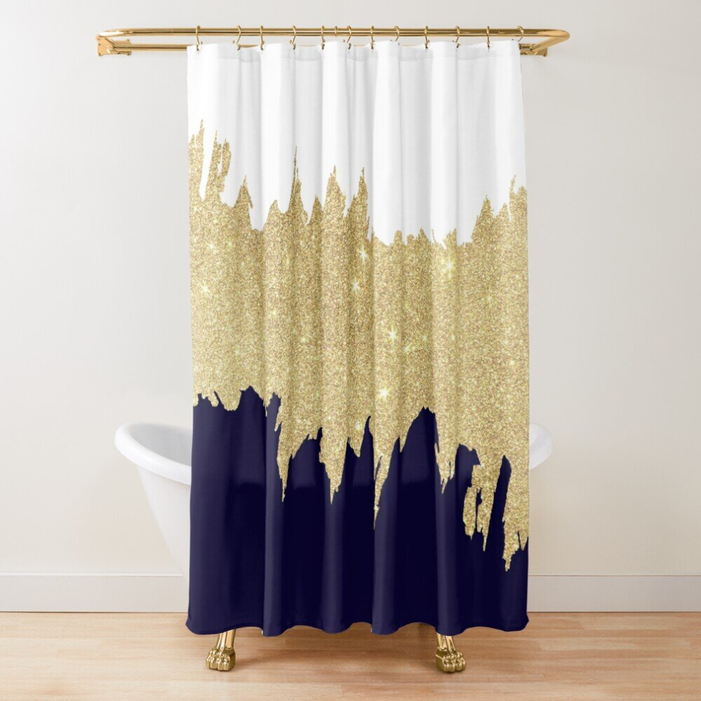 Shower Curtains Modern navy blue white faux gold glitter brushstrokes for Bathroom Decor 72x72 inches