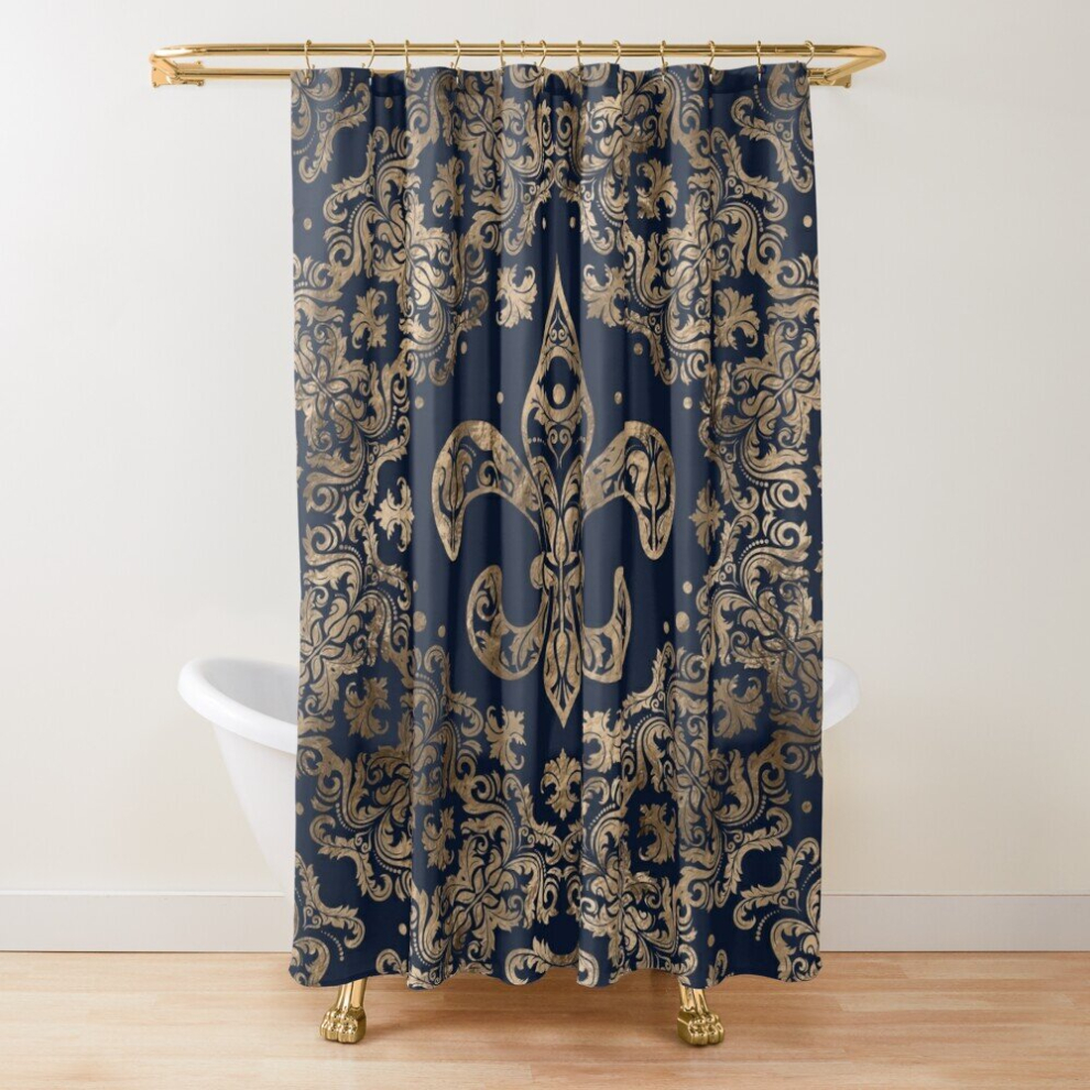 Shower Curtains Luxury Fleur-de-lis Ornament - gold and dark blue for Bathroom Decor 72x72 inches