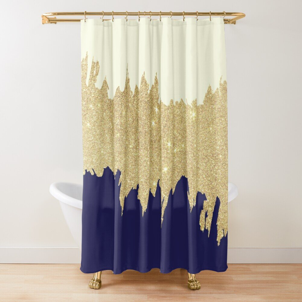 Shower Curtains Navy blue ivory faux gold glitter brushstrokes for Bathroom Decor 72x72 inches