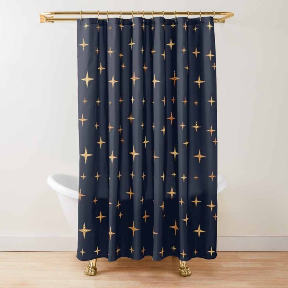 Shower Curtains Navy Blue Gold Stars for Bathroom Decor 72x72 inches