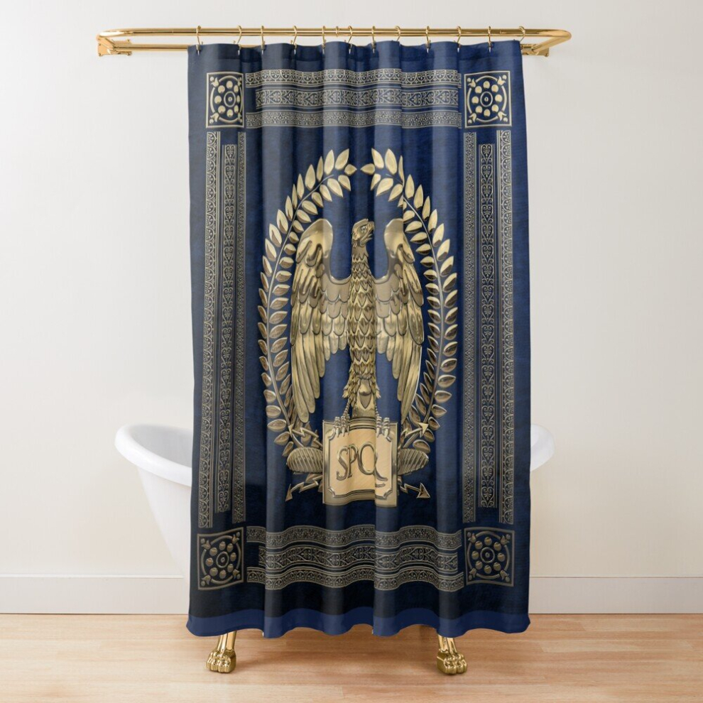 Shower Curtains Roman Empire - Gold Imperial Eagle over Blue Velvet for Bathroom Decor 72x72 inches