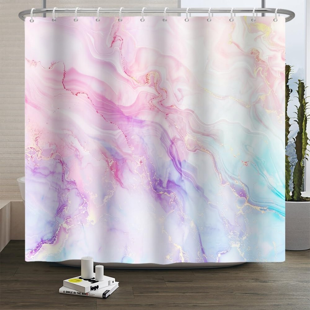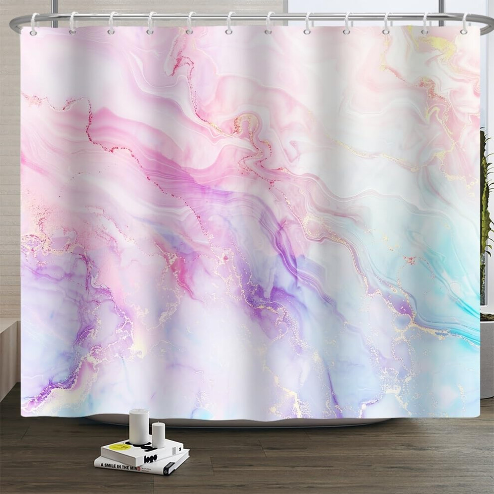 Xiaoterna Marble Shower Curtain Colorful Blue Pink Purple Gold Glitter Marble Shower Curtains Luxury Watercolor Ink Art Bathroom Curtains Washable