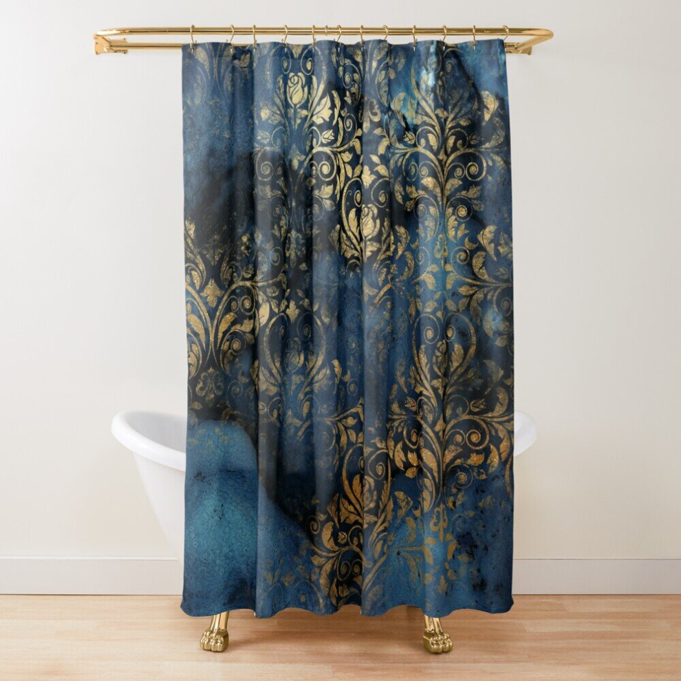 Shower Curtains Indigo Blue Shiny Gold Damask for Bathroom Decor 72x72 inches