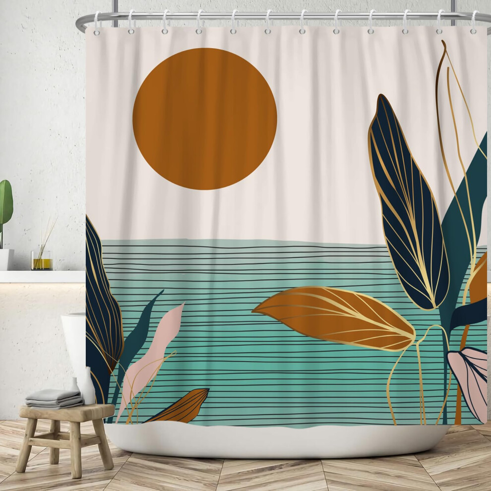 ASDCXZ Boho Shower Curtain 180x180 cm, Modern Abstract Art Brown Sun Blue Gold Leaves Grey Washable Bath Shower Curtains Polyester Textile Waterproof