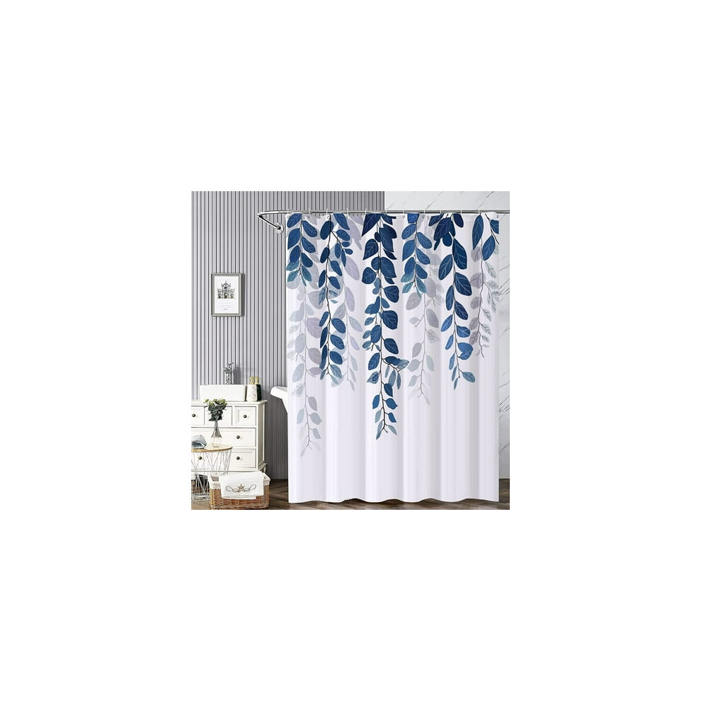 Floral Shower Curtain with 12 Hooks, Waterproof Polysilicon Shower Curtains, Machine Washable, Quick Dry, 180x180cm for Bathtub gold Bathroom (Blue)