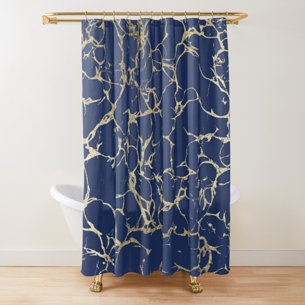 Shower Curtains Chic navy blue faux gold foil marble pattern for Bathroom Decor 72x72 inches