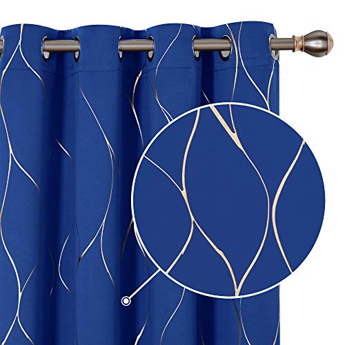 Deconovo Thermal Insulated Gold Wave Foil Printed Eyelet Blackout Curtains for Kids Bedroom - Royal Blue W55 x L95 One Pair