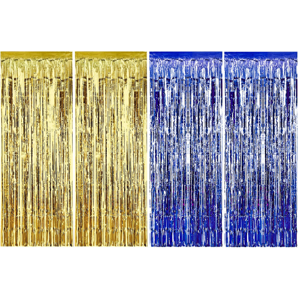 Sumind 4 Pack Foil Curtains Metallic Fringe Curtains Shimmer Curtain for Birthday Wedding Party Christmas Decorations (Blue and Gold)