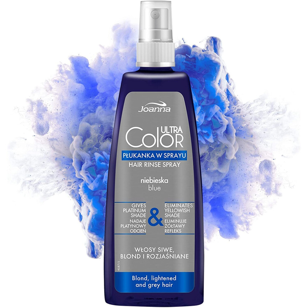 Joanna Ultra Color - Blue Hair Rinse In Spray For Blond And Light Hair - Platinum Grey Shade - Natural Shine & Hair Care - Eliminates Yellowish Hues