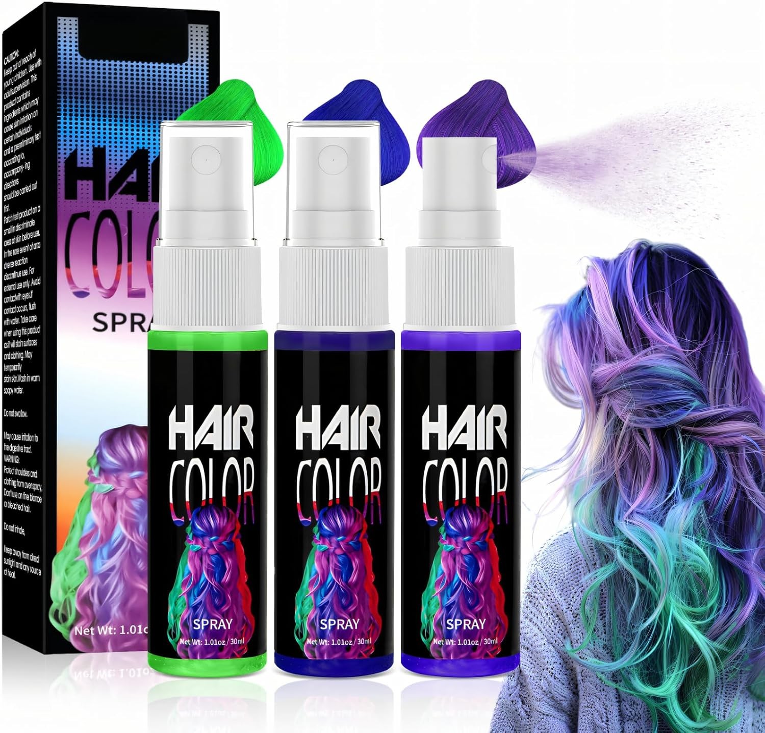 3 Color Washable Hair Color Spray, Temporary Hair Colour Spray, Purple Blue Red