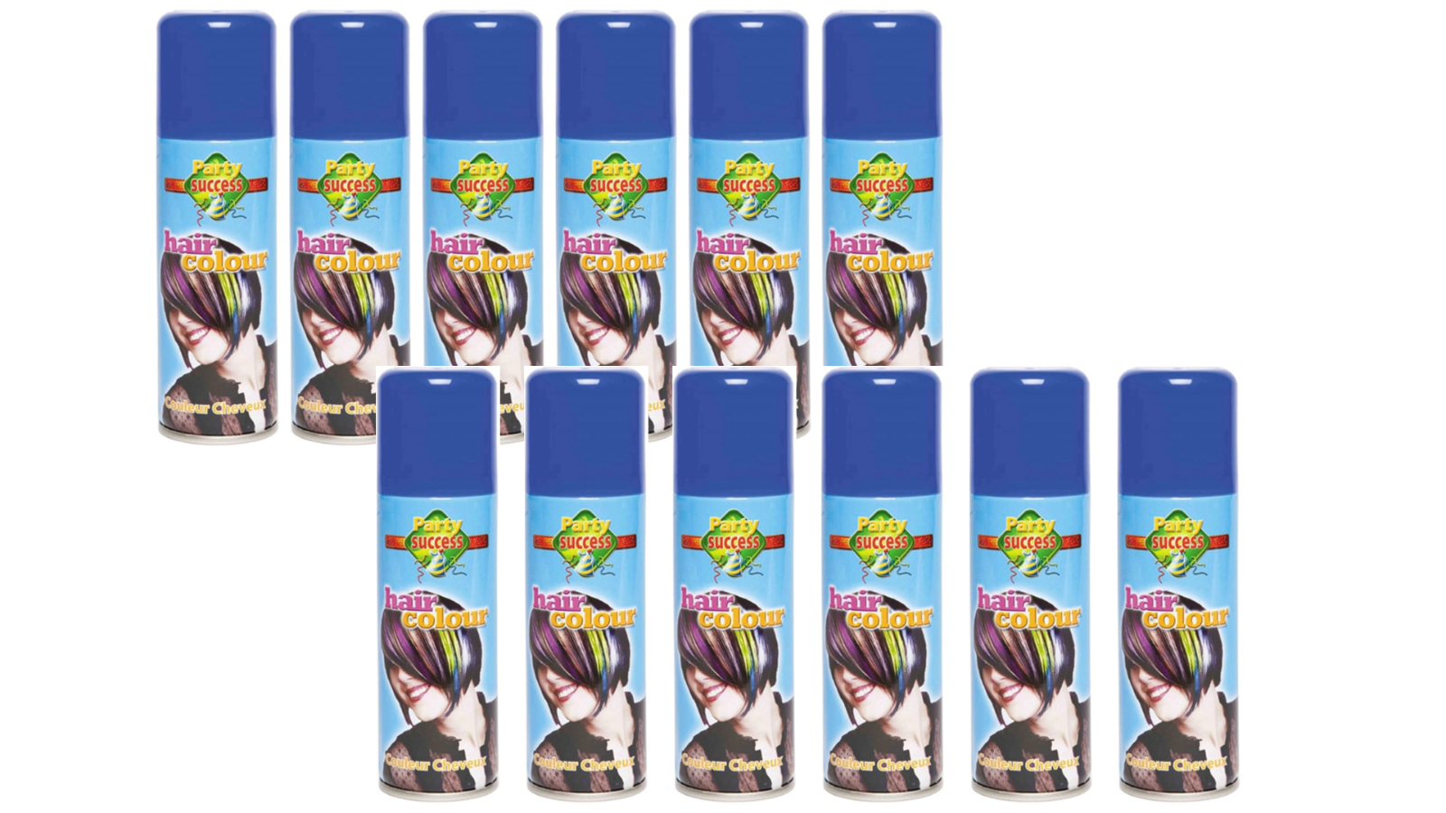12 X Party Success Temporary Hair Colour Spray Wash Out Spray 125ml (BLUE)