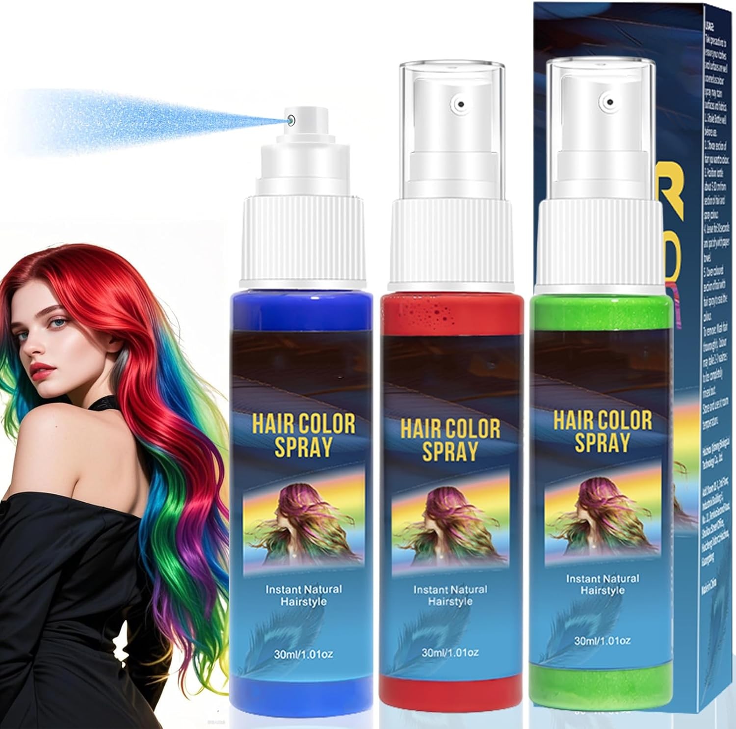 Temporary Hair Colour Spray, 3Pcs Red Blue Green Color Hairspray, Washable One