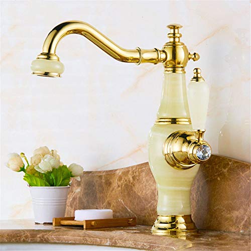KKXXYQFC Natural Jade Rotary Face Pot Faucet Single Hole Cold and Water Mixer Single Hand Bathroom Tank Faucet with Aerator,Blue Jade Dwarf