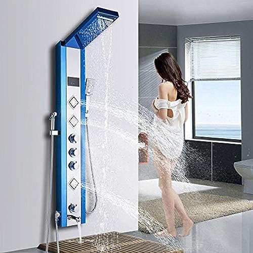 LULUMAIC Bathroom Shower FaucetShower Panel Column Bathtub Mixer Tap with Hand Shower Temperature Screen-,Blue