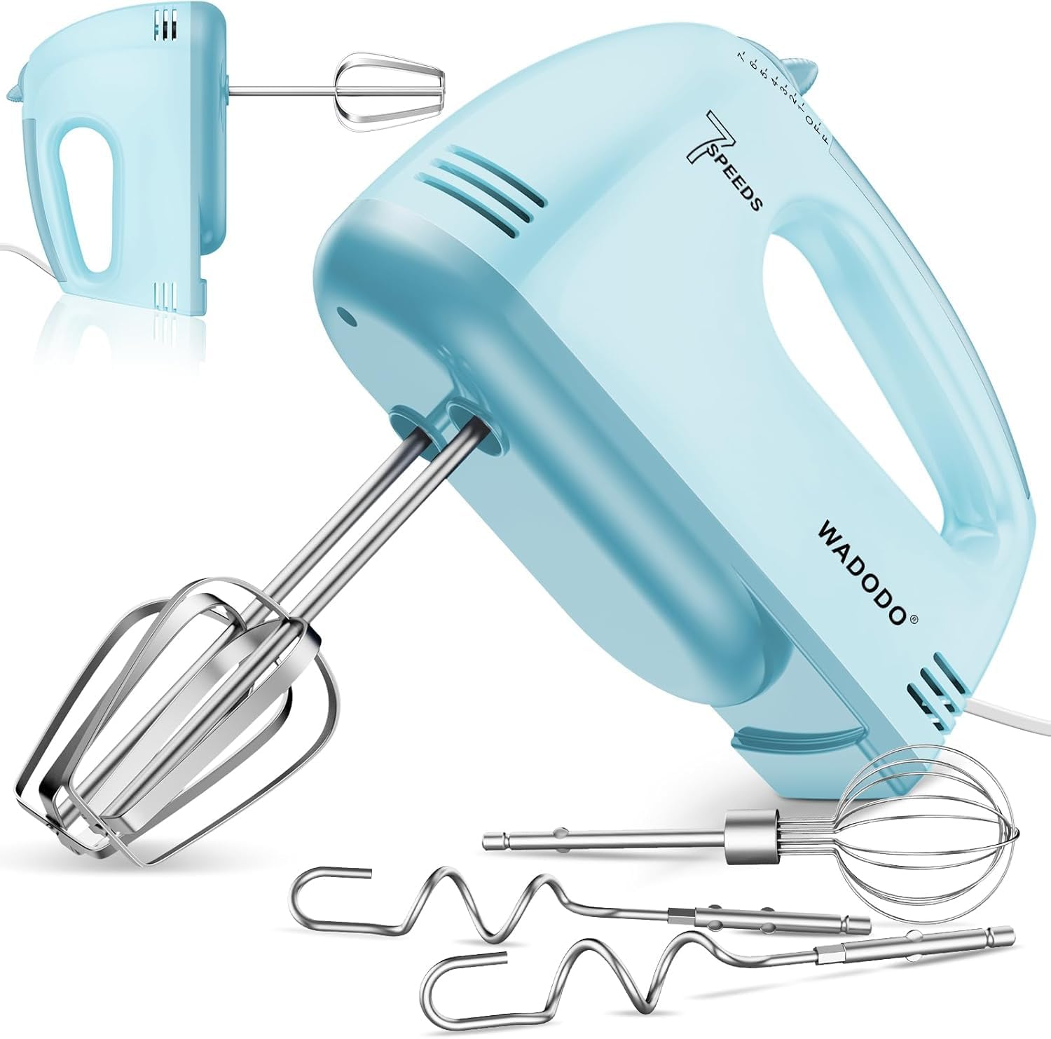 WADODO Electric Hand Mixer, 7-Speeds Small Handheld Mixer with 5 * 304 Stainless