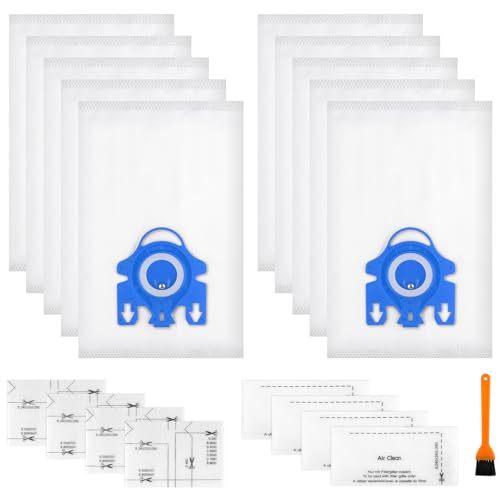 10 Pack Dust Bags GN Replacement Compatible with Miele Hoover GN Vacuum Cleaner Bags Fits for Classic C1 Complete C2 Complete C3, S2 S5 S8 Series with 3 Motor Protection & 3 Exhaust Filters