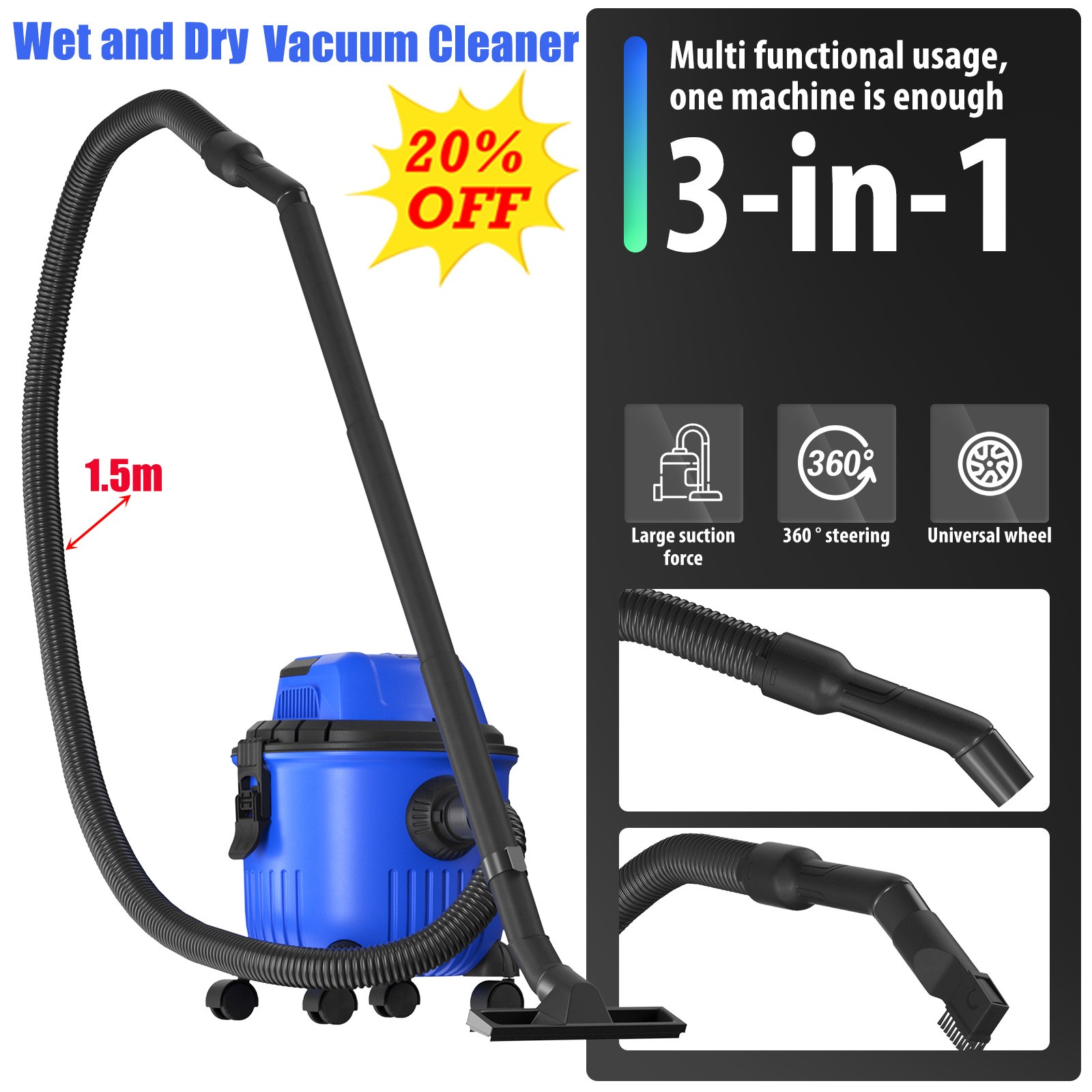 Heavy Duty 6000W Blue Wet & Dry Vacuum Cleaner 15 Ltr Tub Hoover Wheeled