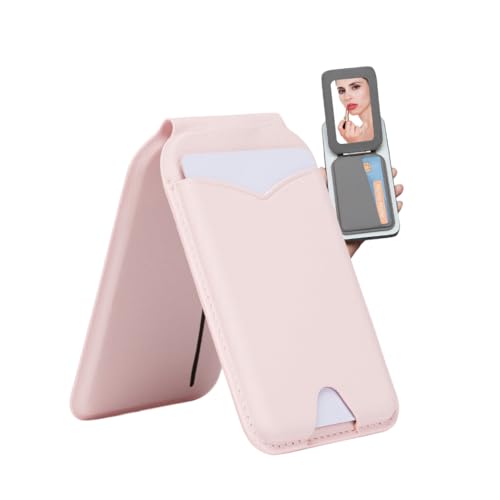 Mag-Safe Wallet with Mirror & Stand, Strong Magnetic Hold, RFID Blocking Card Holder, Magnetic Card Wallet for Mag-Safe iPhones, Slim MagSafe Accessory for iPhone case. (Baby Pink)