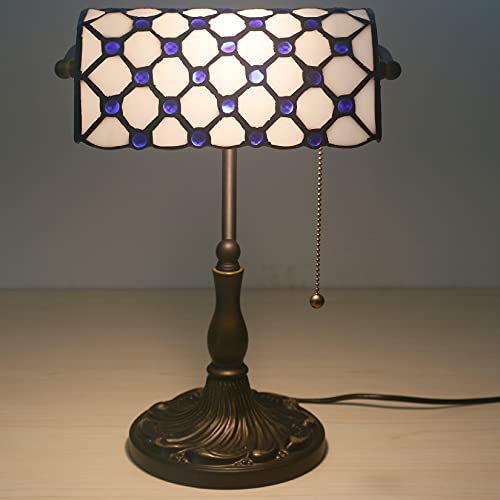 CWZZWS Table lamp colored glass lamp crystal bead table lamp study bedroom bedside reading lamp emerald green glass (white blue glass bead lampshade)