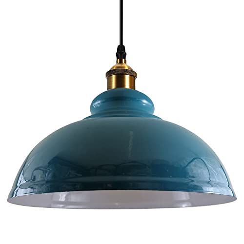 LEDSONE Retro Cyan Blue Metal Ceiling Lampshade 29cm Easy Fit Modern Hanging Pendant Lightshade for Bedroom Dining Room Hallway Office Industrial Kitchen Restaurant Bar