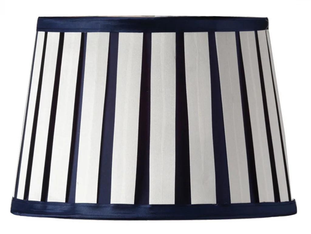 Lampshade Blue 14" Navy With Off-White Pleats Faux Silk Tapered Drum 355mm Oaks