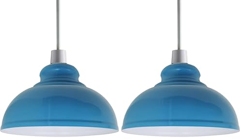 LEDSone Retro Blue Metal Ceiling Lampshade 29cm Easy Fit Modern Hanging Pendant Lightshade for Bedroom Dining Room Hallway Office Industrial Kitchen Restaurant Bar (Pack of 2)