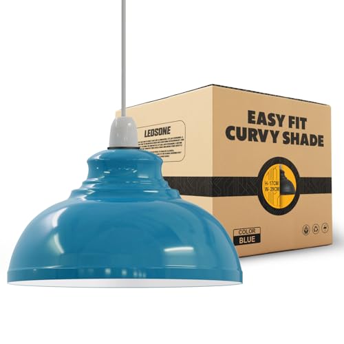 LEDSONE Retro Blue Metal Ceiling Lampshade 29cm Easy Fit Modern Hanging Pendant Lightshade for Bedroom Dining Room Hallway Office Industrial Kitchen Restaurant Bar