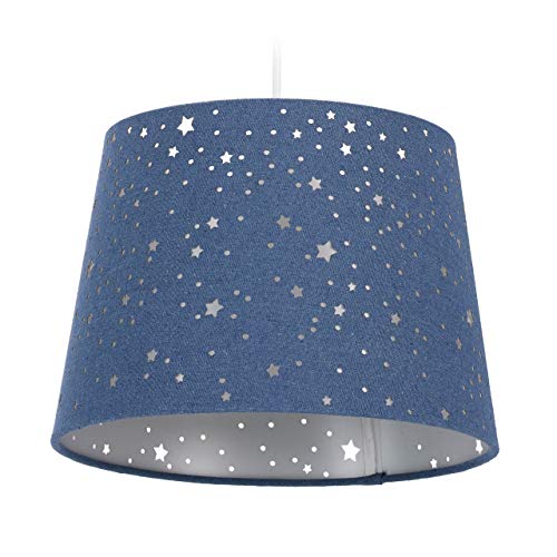 Relaxdays Children’s Hanging Lamp with Star Design, Kids’ Ceiling Light, Round Fabric Lampshade, Blue