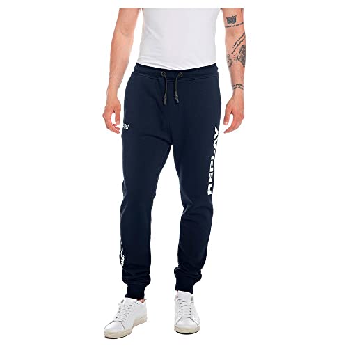 REPLAY Men's M9931 Cotton Fleece Slacks, Blue 085, XL