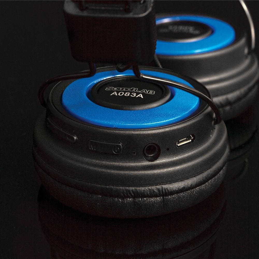 Wireless or Wired Bluetooth 5.0 Headphones On Ear, Micro SD FM and Mic Blue