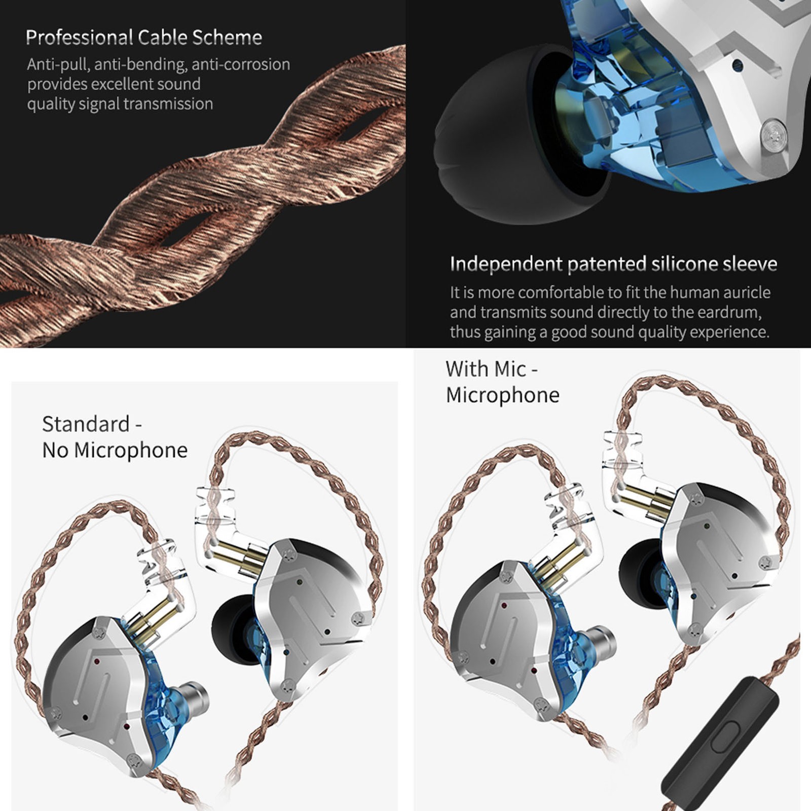 Blue With Mic ZS10 Pro 3.5mm Wired In-ear Headphones 1DD+4BA Hybrid HiFi HEN