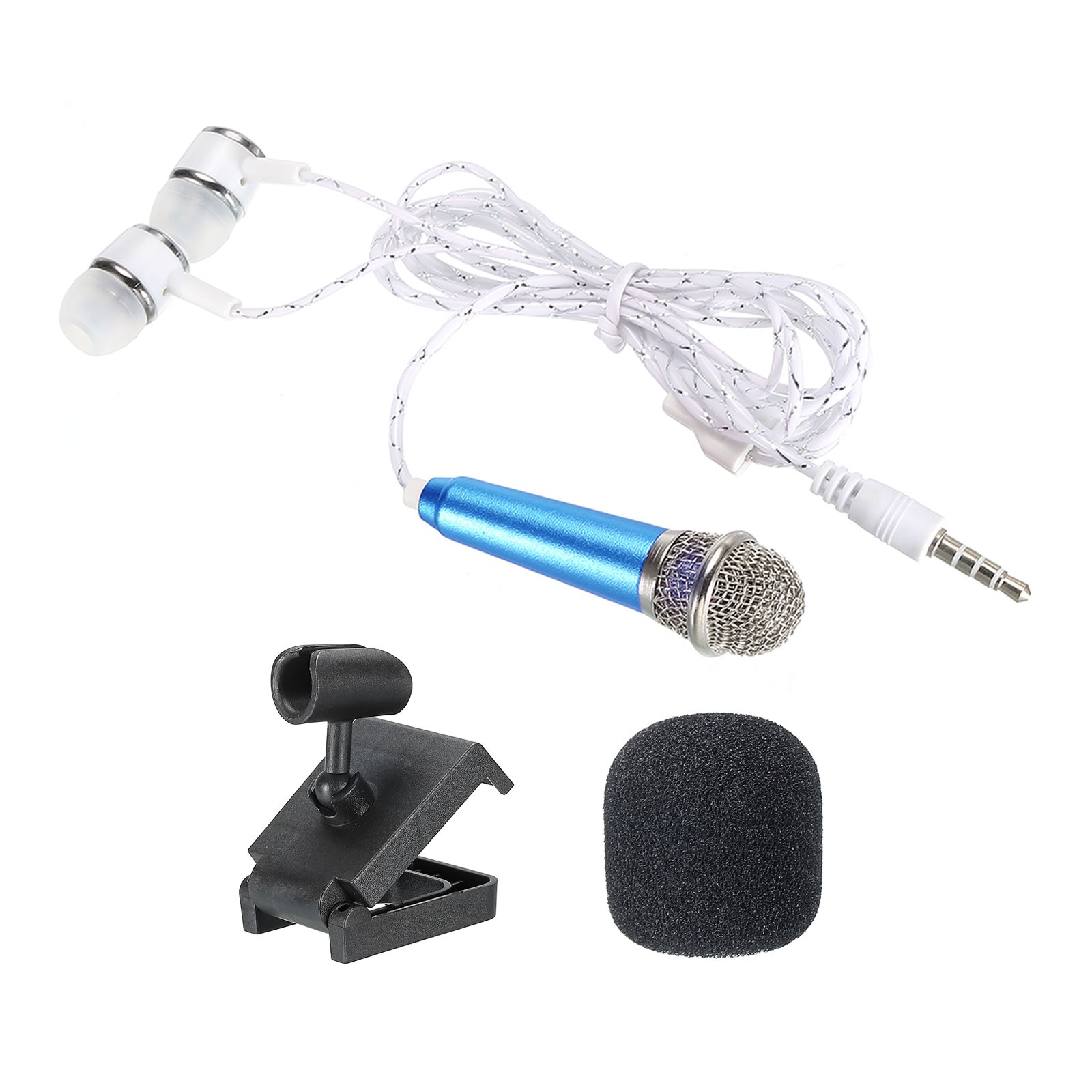 Mini Microphone Blue with Earphone, Mic Stand and Cover for Singing 1Pcs
