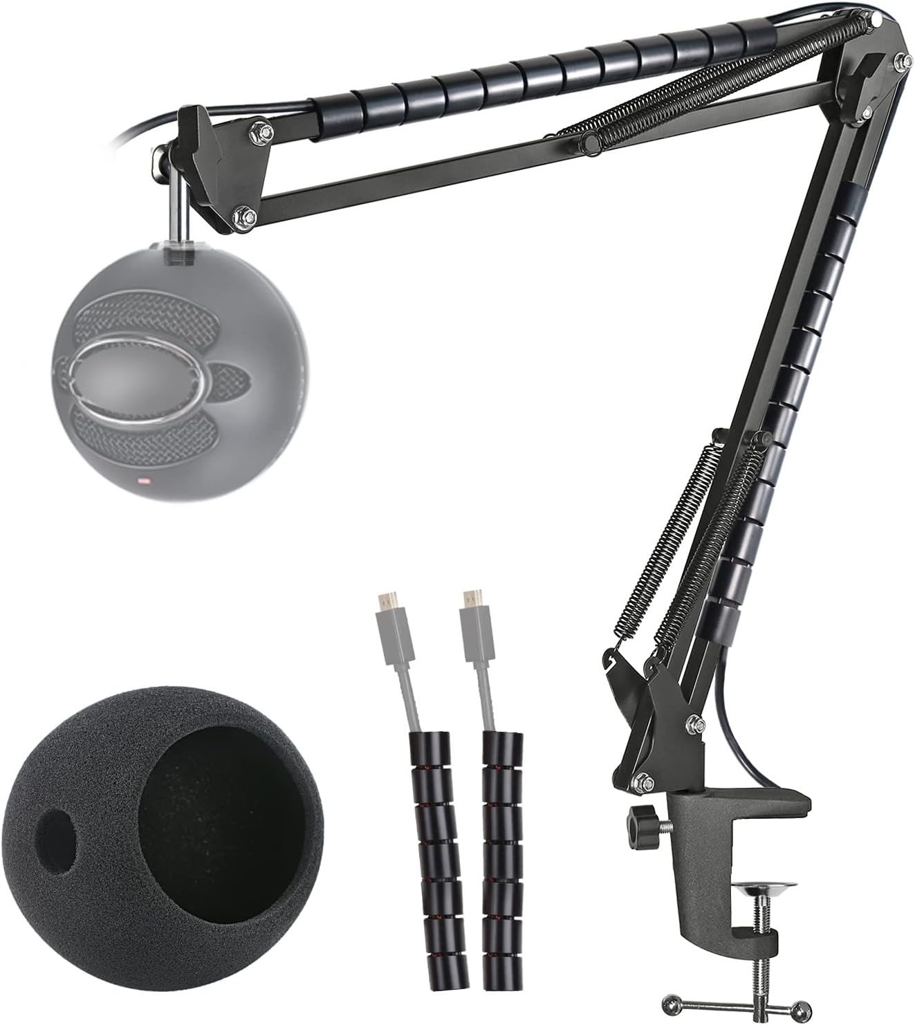 Blue Snowball Mic Stand with Windscreen - Suspension Boom Arm Black