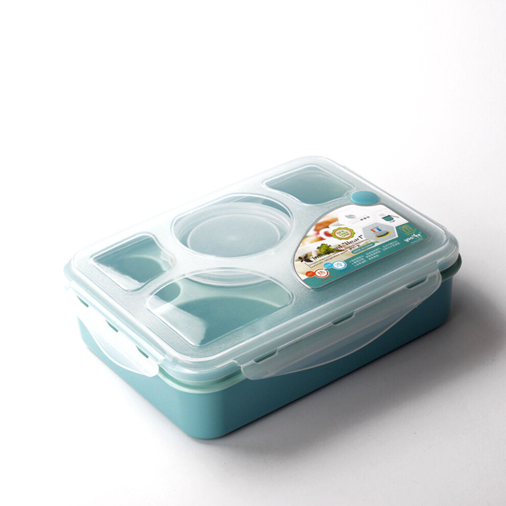 (Blue) Microwave Oven Heating Five-lattice Lunch Box Student Storage Box