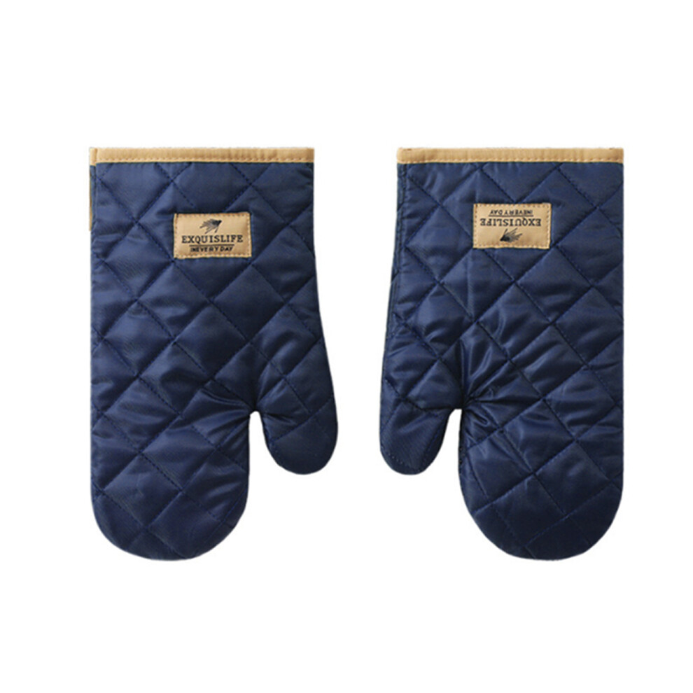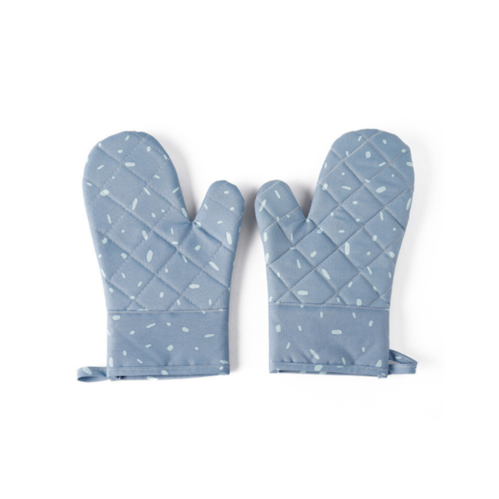 (Blue) Heat Resistant Microwave Oven Baking Glove Cotton Anti-scalding Insulation Clip Kitchen Household BBQ Oven Pot Mitten Accessorie