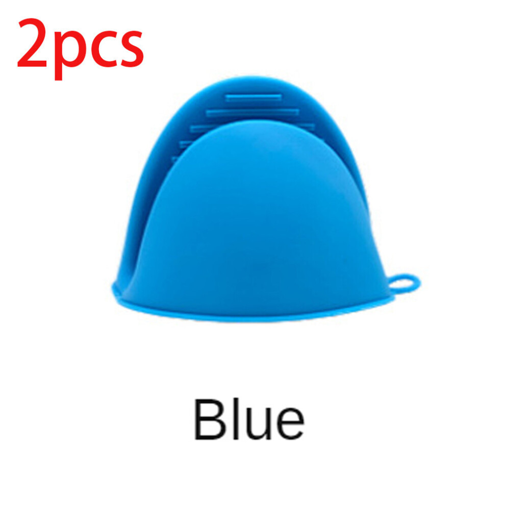 (Blue) 2pcs Silicone Anti-scalding Oven Mitts Heat Insulation Pot Holder Clip Microwave Kitchen Gloves Cooking Grill Baking Oven Mitts