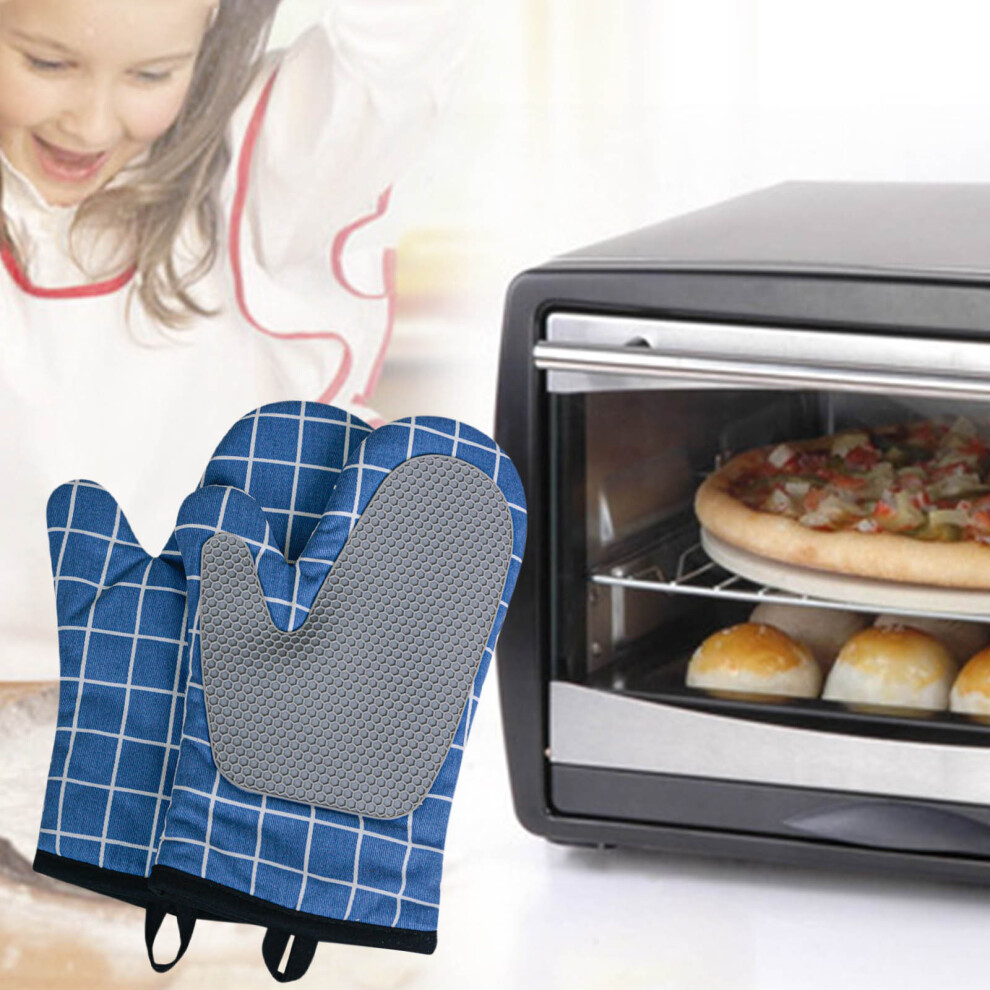 Oven Mitts Thickened Heat Resistant Hand Protection Comfortable Fit Baking Gloves for Microwave Kitchen Blue