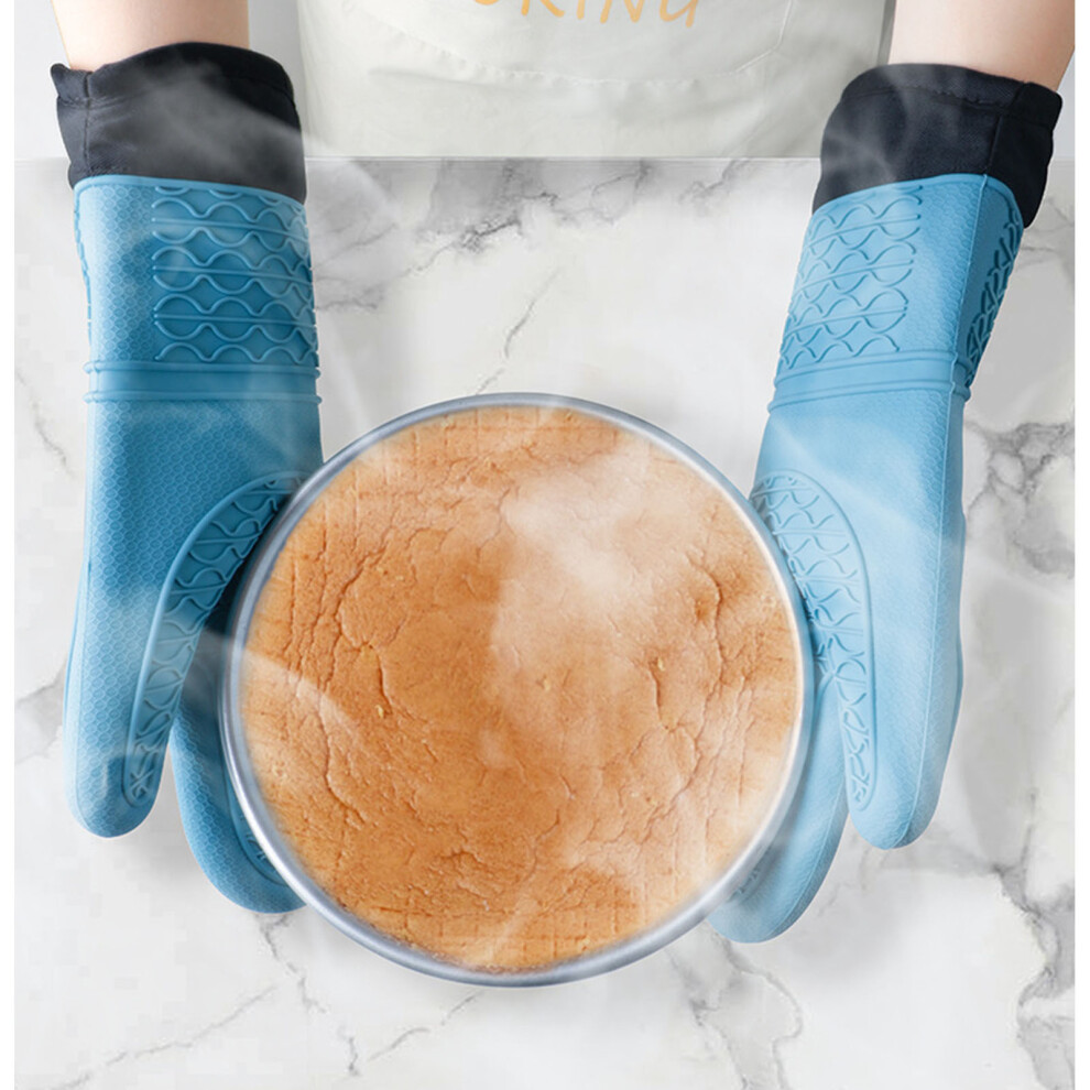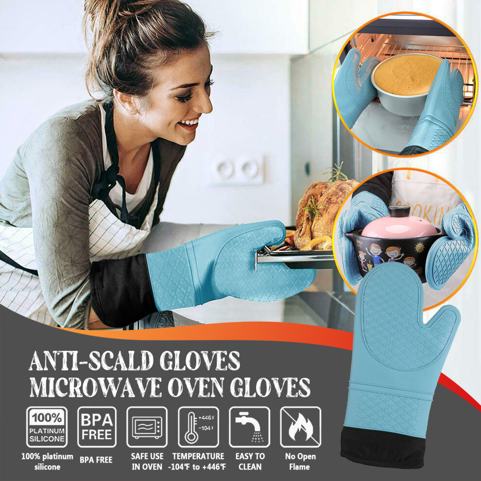 Sky Blue Silicone Oven & Microwave Gloves, Thickened, Heat Resistant 34x19cm