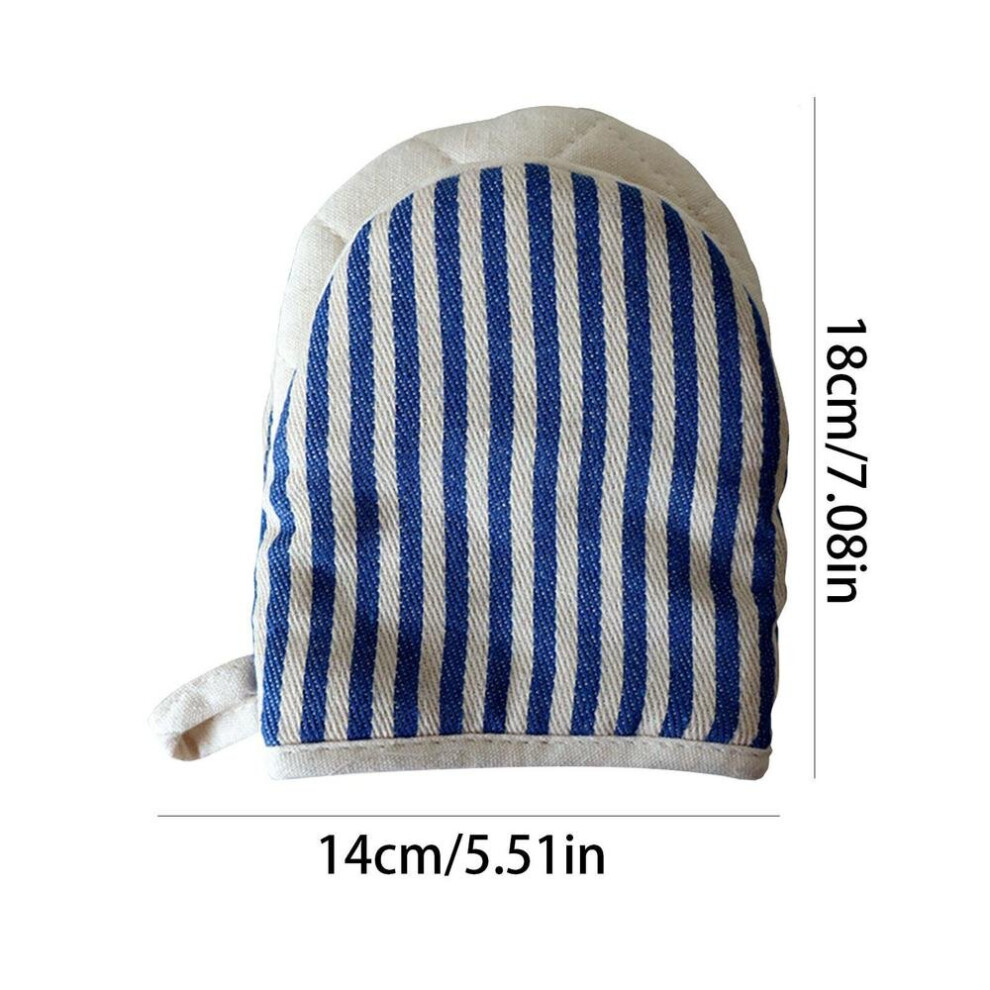 (Blue) Microwave Oven Gloves Heat Resistant Stripe Cotton Mitts Lanyard