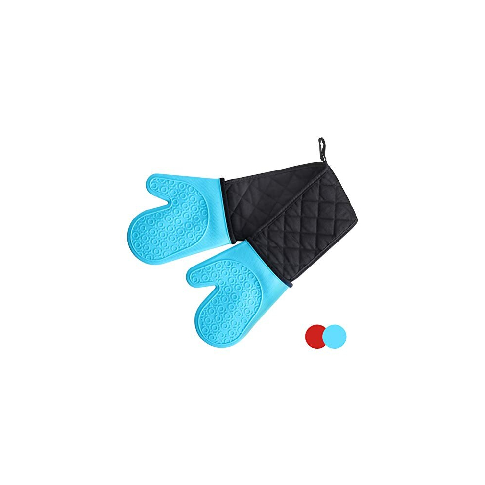 Alimat PluS Double Oven Gloves Mitts - Heat Resistant Silicone Oven Gloves Non-Slip with Cotton Lining for Kitchen, Baking, Cooking, Microwave (Blue)