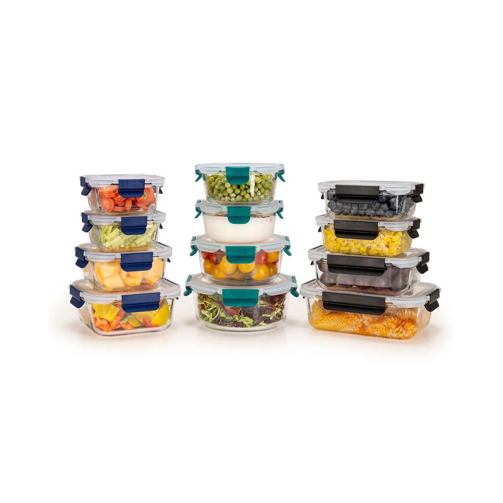 (Black-Green-Blue) Glass Food Storage Containers With Airtight Lids set of 12, Glass Meal Prep Containers with BPA-Free Lids for Microwave, Oven, Free