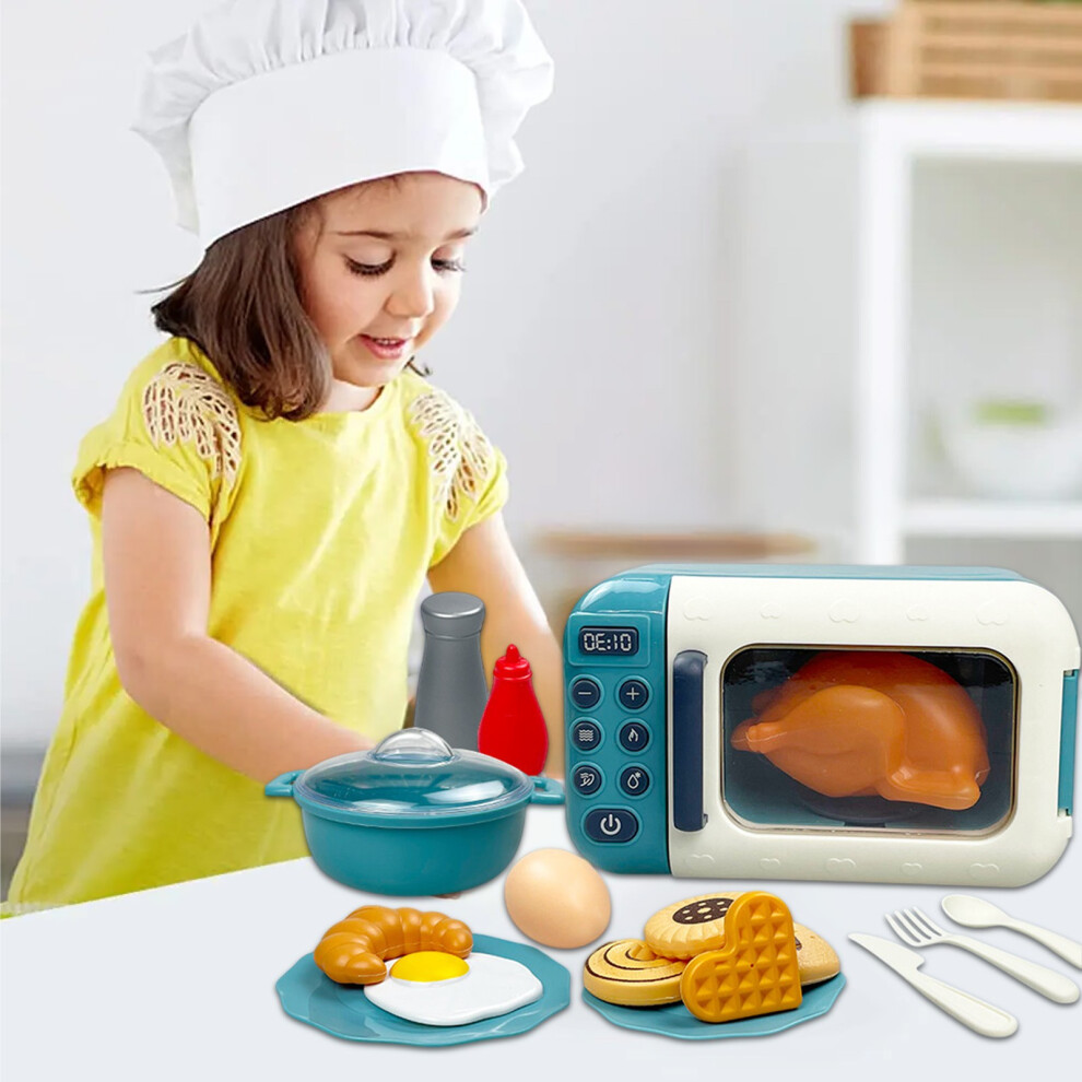 (Blue) Children's Microwave Oven Toy Oven Baby Pretend Play Kitchen Cooking Set For Boys And Girls With Realistic Kitchen Utensils